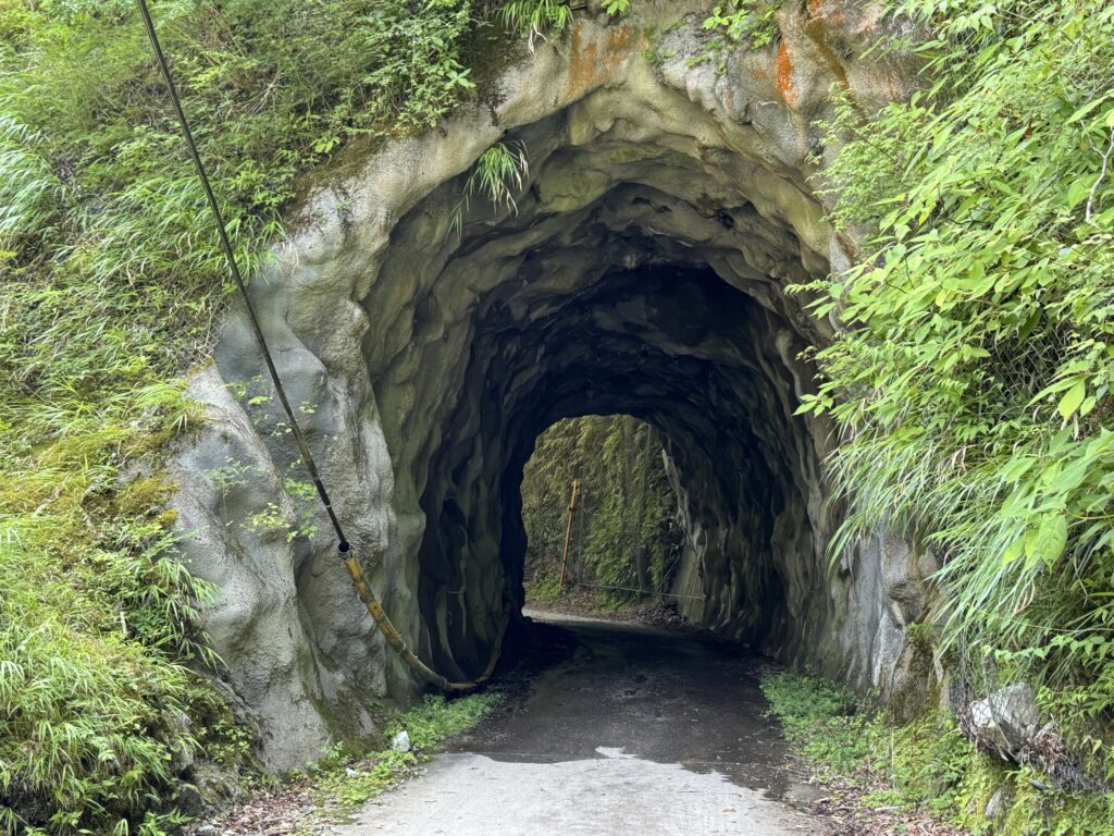 登山 ユーシンロッジ 2025年9月11日 tabacco taro その後もボコボコのトンネルを抜け、右手には滝も見えてくる。道路を横断する水の流れがいくつもあり、山道らしい景観を楽しませてくれる。 さらに進むとゲートで閉ざされたトンネルが現れる。だが通行可能との情報があったため、ここもそのまま進んでいく。 久々に設置された看板を確認し、道を間違えていないことを知り安心した。 やがて轍のある橋を渡ると、道が二手に分かれるポイントに出る。案内表示はないが、正解は右手側。ここだけは注意が必要だ。 ページ: 1 2 3 4 5 6